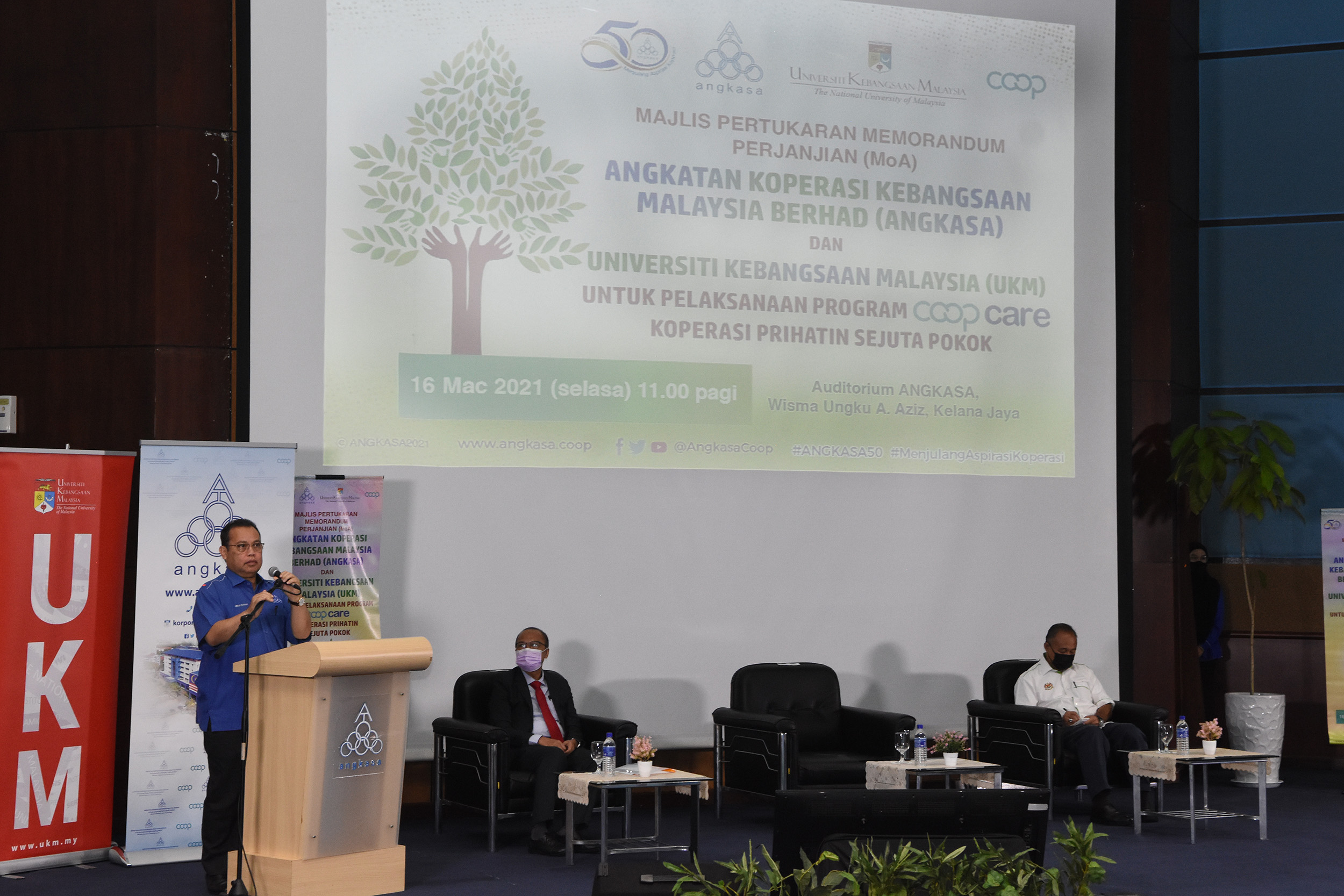 Usaha pemuliharaan hutan merupakan keperluan yang kritikal memandangkan ianya khazanah yang penting terhadap pelbagai jenis hidupan dan sumber yang tidak ternilai harganya. Menyedari kepentingan bagi memulihara hutan dan alam sekitar, ANGKASA dan Universiti Kebangsaan Malaysia (UKM) telah memeterai Memorandum Perjanjian (MoA) bagi penganjuran dan pelaksanaan Program Tanggungjawab Sosial Koperasi (CSR) COOPCARE Koperasi Prihatin Sejuta Pokok pada 16 Mac 2021 di Wisma Ungku. Aziz, Kelana Jaya.